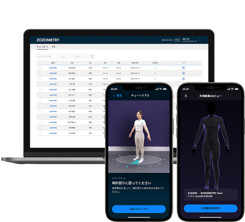 採寸が必要な服の売上拡大やコスト削減に貢献します。